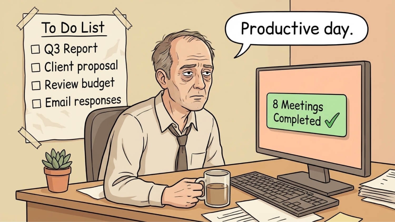 Eight meetings yesterday. Zero things actually done.